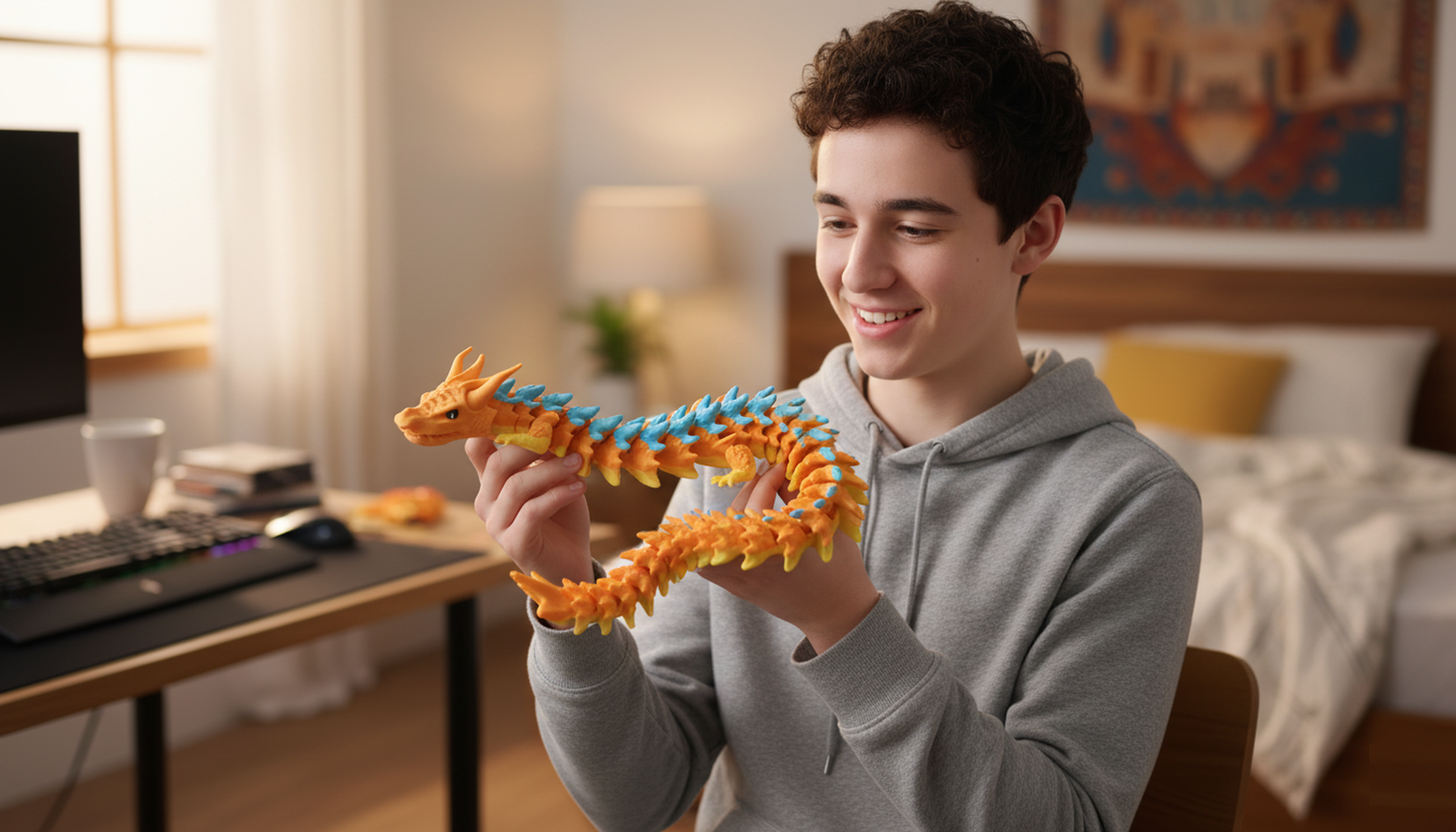 Flexi-Dragon articulado 35 cm – Impreso en 3D multicolor PLA (elige 3 colores) -
